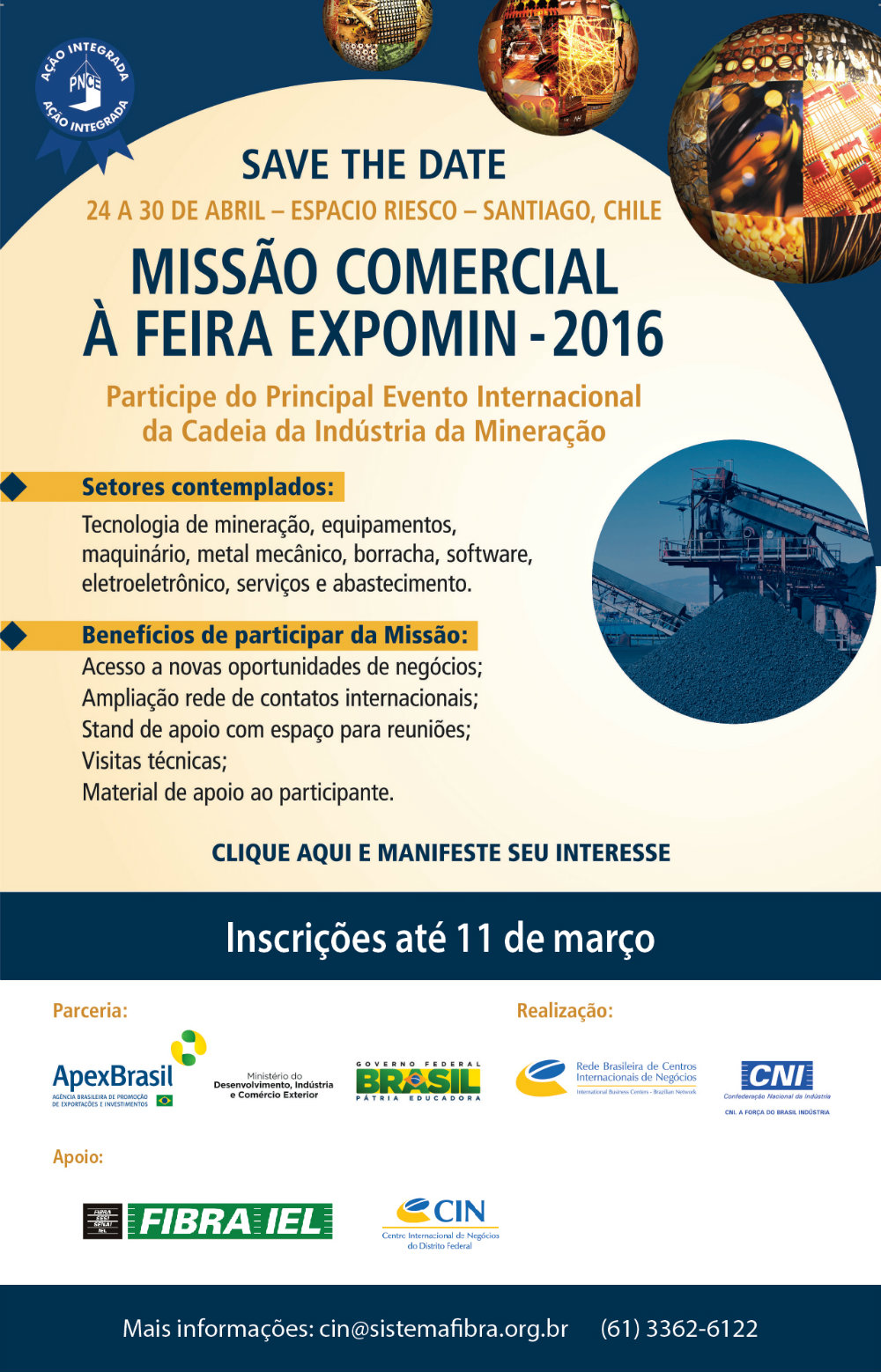 Feira Expomin  Missão Comercial  25 a 29/04  Santiago, Chile  Multisetorial